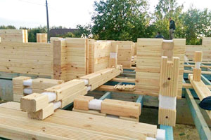 Construction of houses from wooden beam