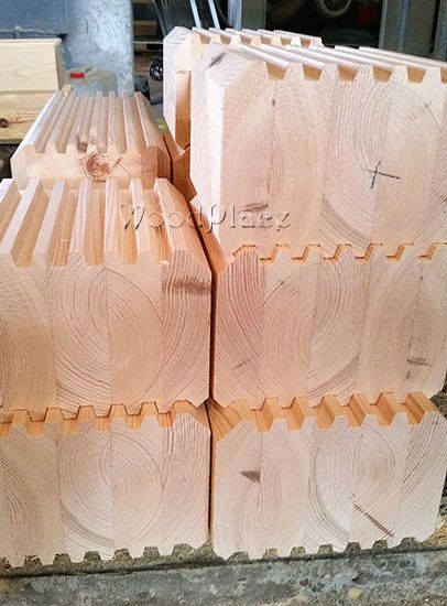 Из бревен, определенного диаметра, на ленточном станке изготавливается брус. Заготовки бруса сушатся в течение нескольких месяцев, после чего подаются на линию профилирования, где происходит четырехсторонняя обработка. Станки придают заготовкам точный размер и необходимый профиль с высочайшей точностью. Следующим этапом является распил бруса на необходимый размер и зарезка «чашек» (замковых элементов). Зарезание «чашек» происходит на четырех шпиндельном чашкозарезном станке. На завершающем этапе производства профилированный брус подаётся на торцевальный узел, где происходит сверление отверстий под шпильки и нагеля.