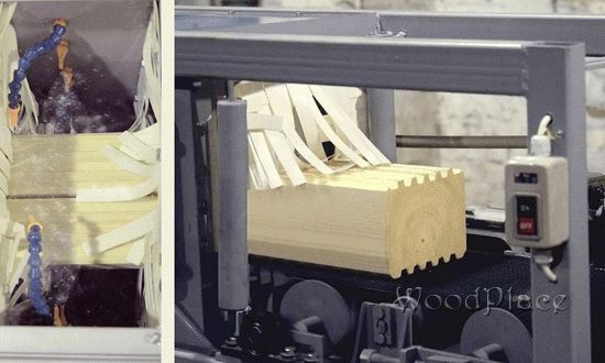Фрезерование мини шипа на торцах бруса нанесение клея и прессование с целью получения заготовок нужной длины | ![]() |