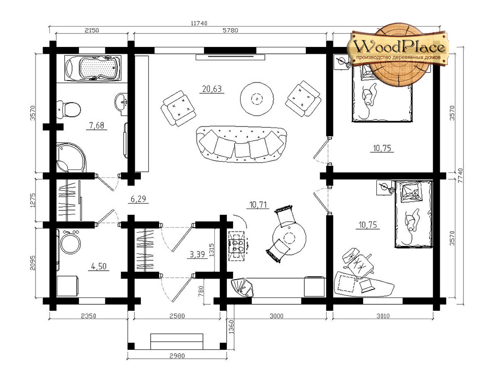 • габариты 7740мм*11740мм