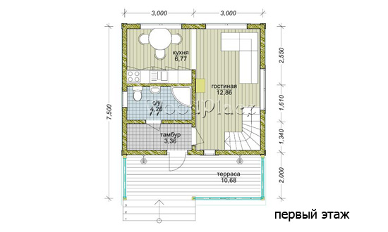 Общая S=66 м2 Жилая S=33 м2