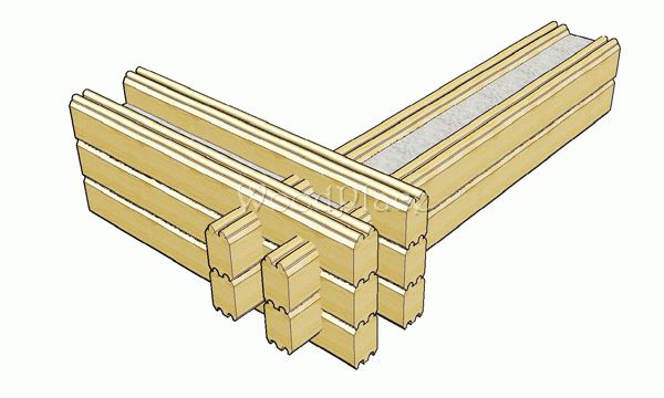 Двойной брус полностью исключает возможность угловых продуваний. А при использовании в домокомплекте именно клееного бруса, состоящего из двух ламелей по 40 мм, позволяет избежать и межвенцовых продуваний (они возможны при использовании двойного бруса из массива древесины).