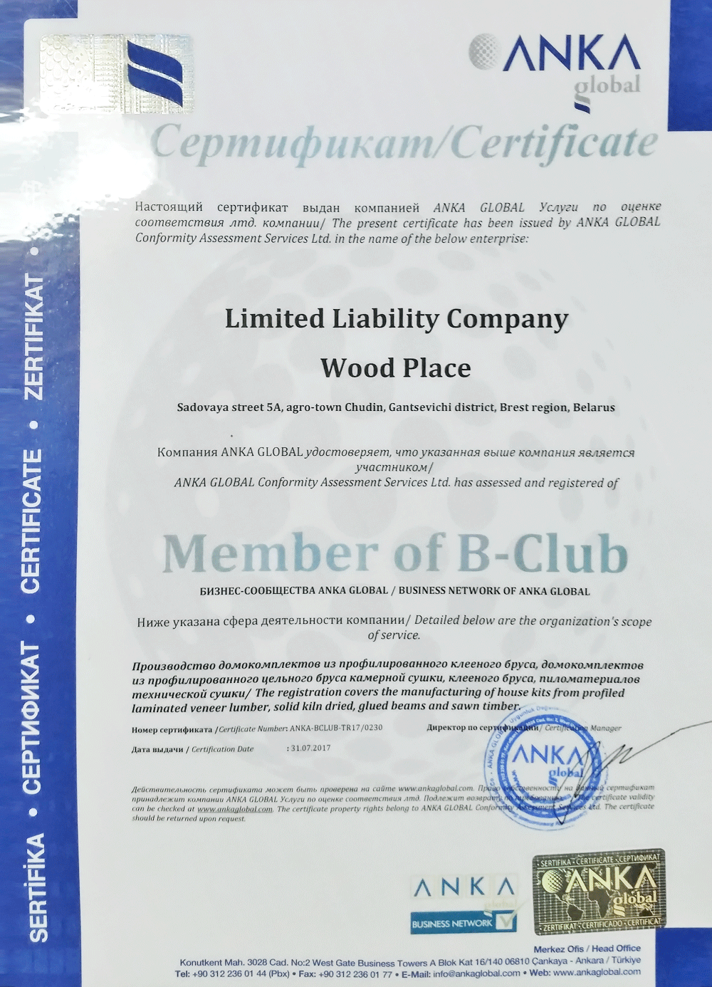 Компания WoodPlace предлагает двойной клееный брус, качество которого отвечает принятым европейским нормам и стандартам (имеются соответствующие сертификаты).