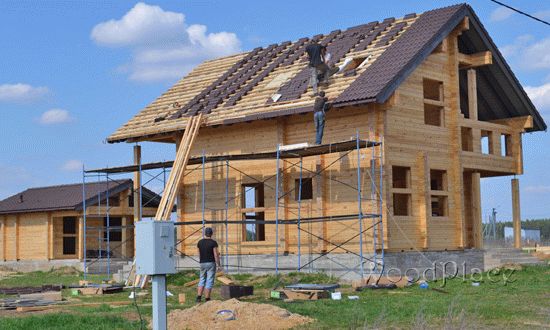 Для домов из профилированного бруса, бруса технической сушки, клееного бруса только песчано-цементная черепица, керамика, глина.